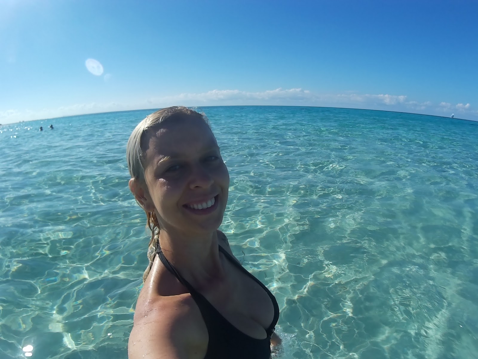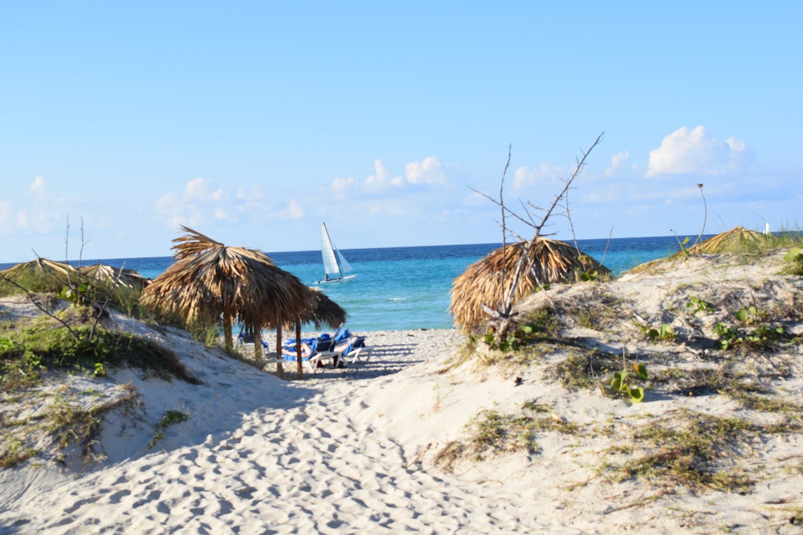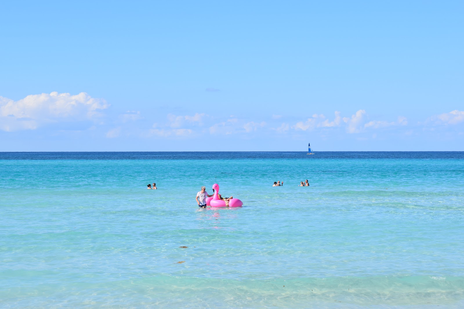 Antes do horário estipulado, o responsável pelos passeios aquáticos me chamou. Coloquei o colete salva-vidas, subimos no veleiro e navegamos por 30 minutos. Ventava bastante e tínhamos que nos segurar com força, pois não tinha assento, apenas uma tela esticada. No fim, perguntou se gostaríamos de ver os peixes de snorkel, por apenas 20 CUC por 1 hora. O preço é ótimo, mas acabamos deixando de fazer a atividade.