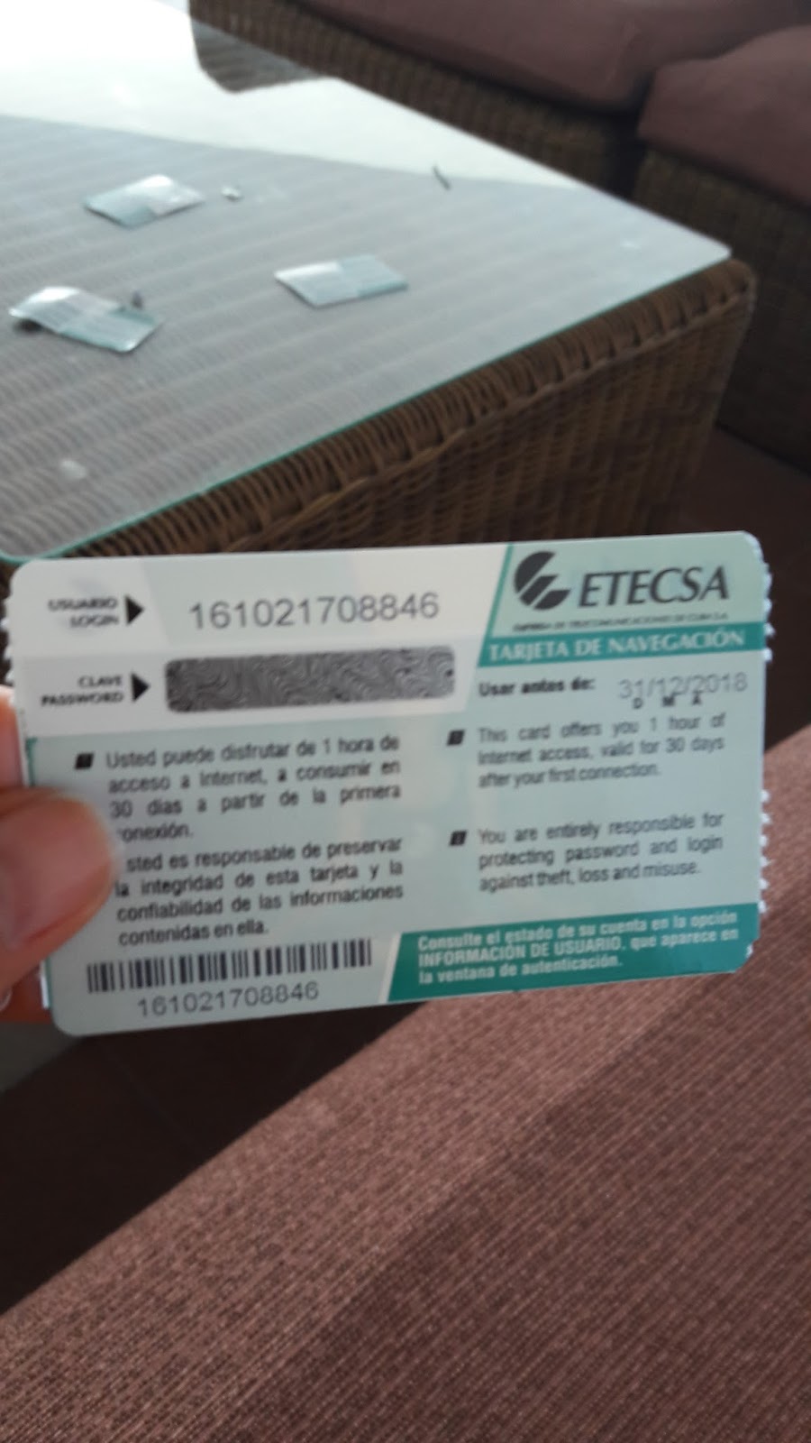Todos os resorts de Varadero fazem o check-in às 16 horas. Até mandei um e-mail perguntando sobre a possibilidade e valor do “early” ckeck-in, mas não obtive resposta. Segui até a recepção e o relógio marcava 11:30. A recepcionista foi muito simpática e disse que poderíamos utilizar toda a estrutura do hotel, desde alimentos a bebidas, poderíamos guardar as malas até às 16h. Imediatamente compramos um cartão para acessar a internet por 1,50 CUC (1 hora de uso).