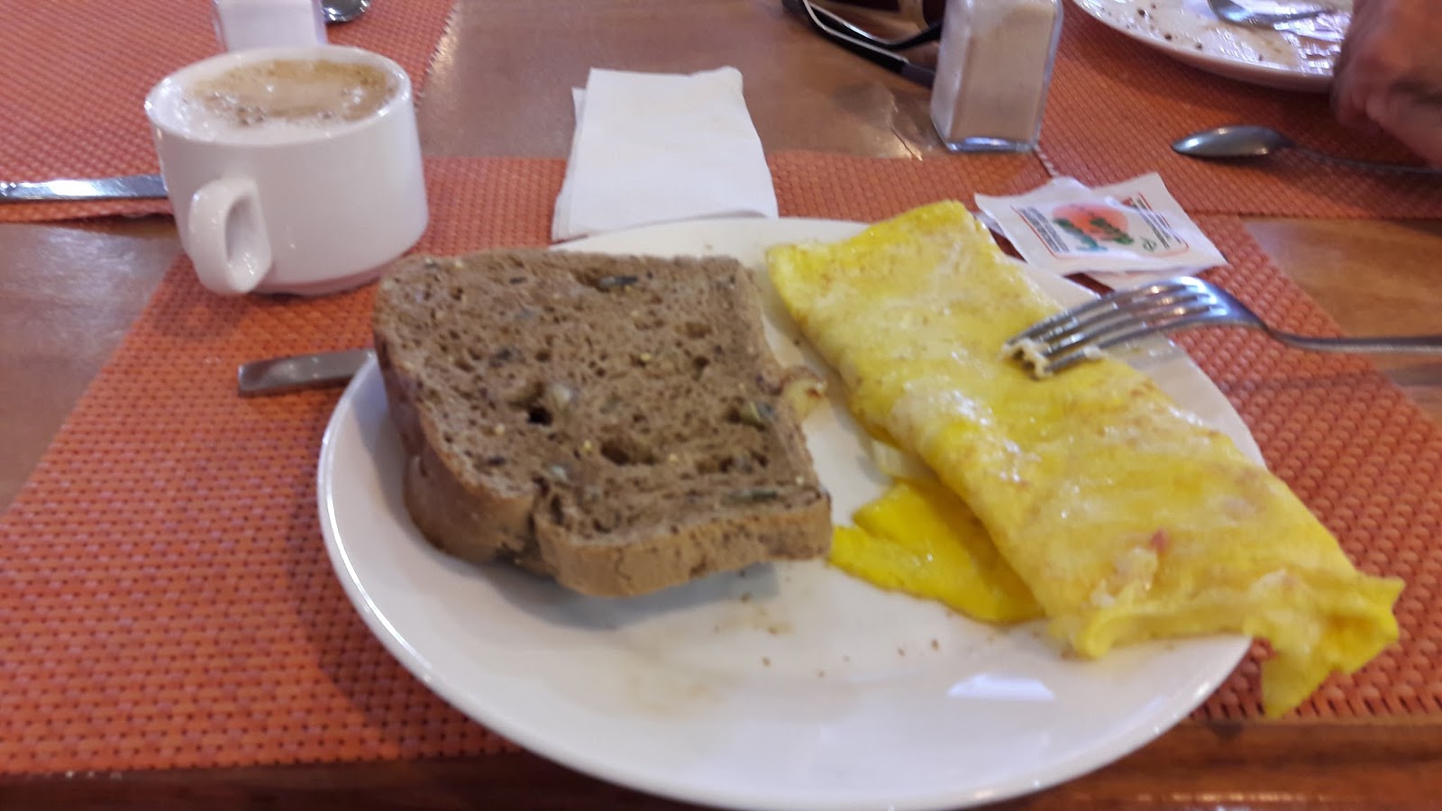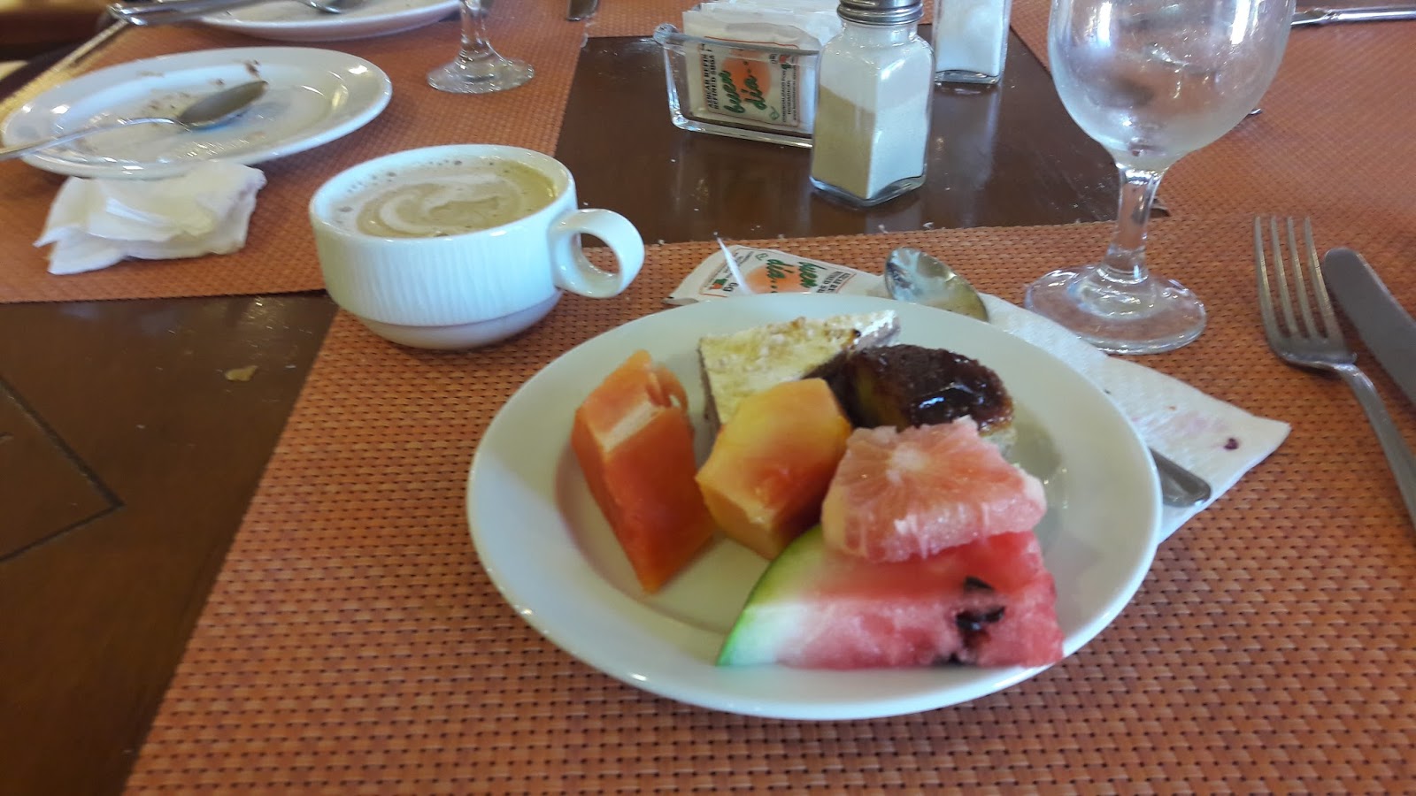 Assim que acordamos, seguimos para o café da manhã, que tem ovos feitos na hora (omelete, ovo mexido, frito), grande variedade de pães, frutas.