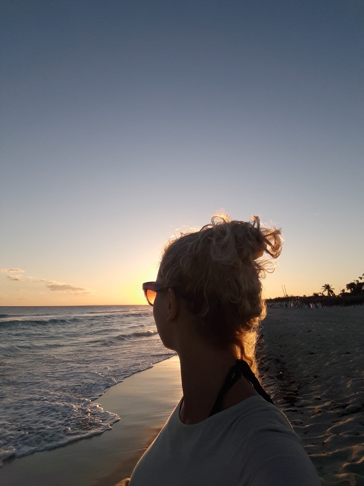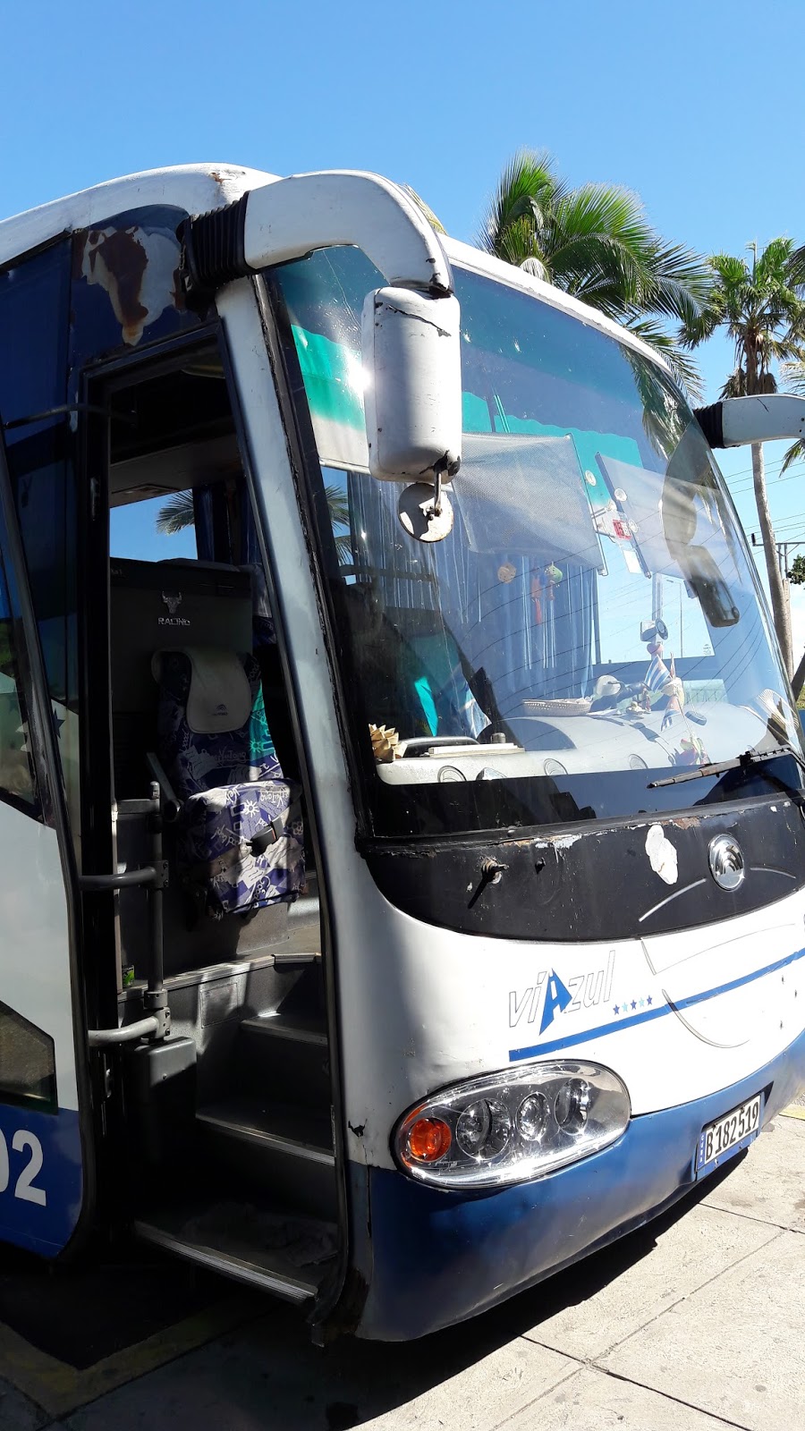 No dia seguinte, o check-out estava marcado para 11 horas, logo, acordamos por volta das 8 horas, tomamos café da manhã, aproveitamos a praia, que estava com bandeira vermelha! Depois nos arrumamos para seguir viagem. Compramos online, na Víazul, a passagem com saída ao meio-dia. Na recepção, perguntei se podiam chamar um táxi, mas me disseram para pegar na porta. O primeiro cobrou 10 CUC, achei muito caro para uma distância de 3 km! O segundo veio e cobrou o mesmo valor, me disse que era tabelado, mas duvido.