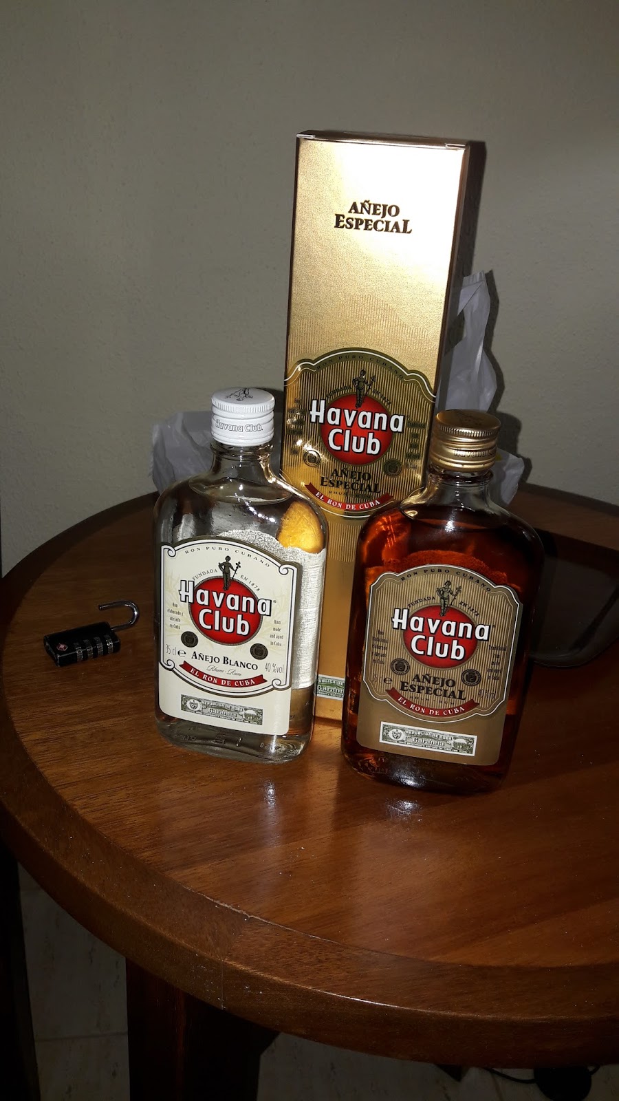 Próximo ao nosso quarto tinha uma loja de conveniência que vendia rum Havana Club, entre outros. Comprei algumas garrafas. Guilherme já tinha comprado camisetas para os sobrinhos na loja do térreo, mas depois comprou garrafinhas de rum também.
