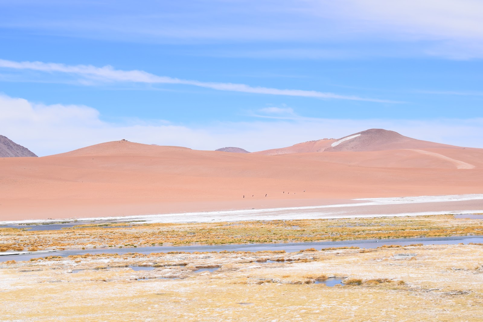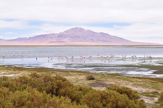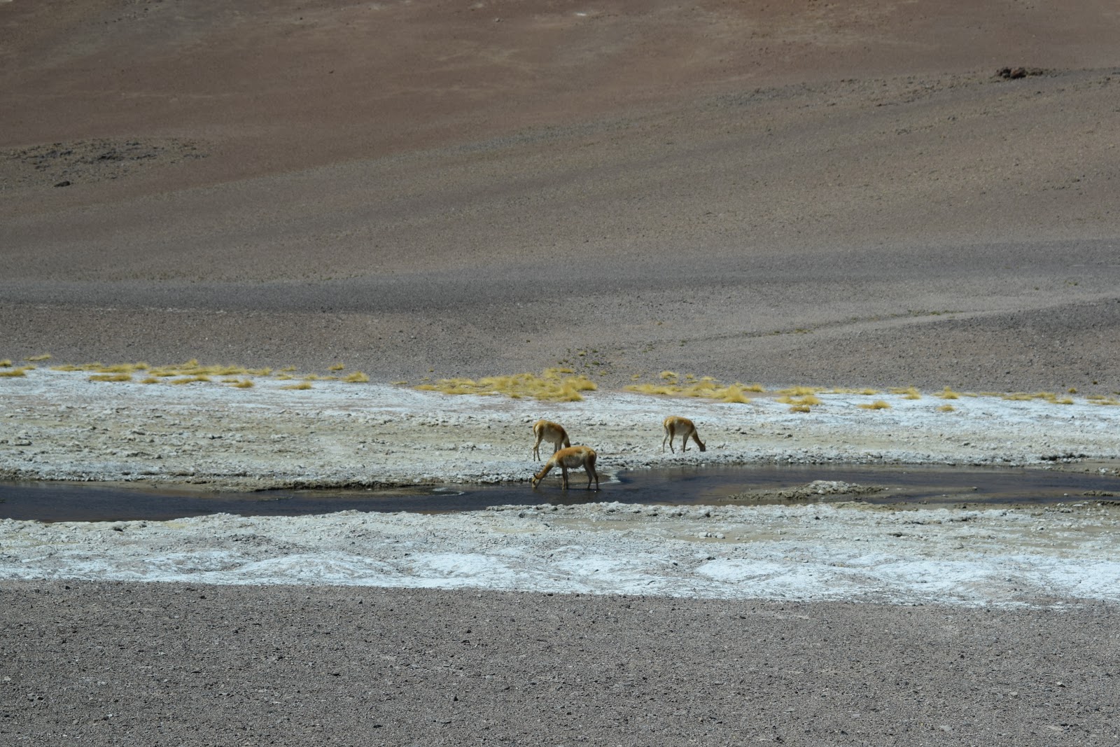 Em seguida, passamos pelo Río Quepiaco, que é um oásis no deserto, onde aves como flamingos e patos buscam água doce.