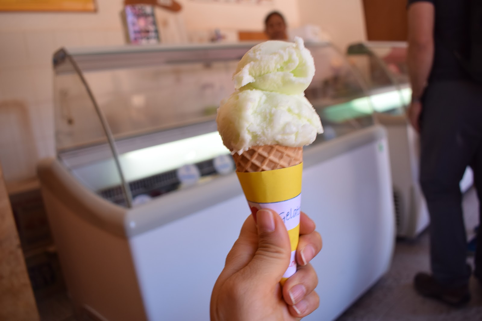 Segui até a sorveteria “Heladería Babalú“, que fica na Caracoles. Não tinha muitos sabores, mas os presentes eram bastante exóticos, como “hoja de coca” (folha de coca), ayrampo, rica rica. Preferi algo tradicional, tendo em vista meu estado de saúde. Pedi uma casquinha de limão, que custou 1.900 pesos.
