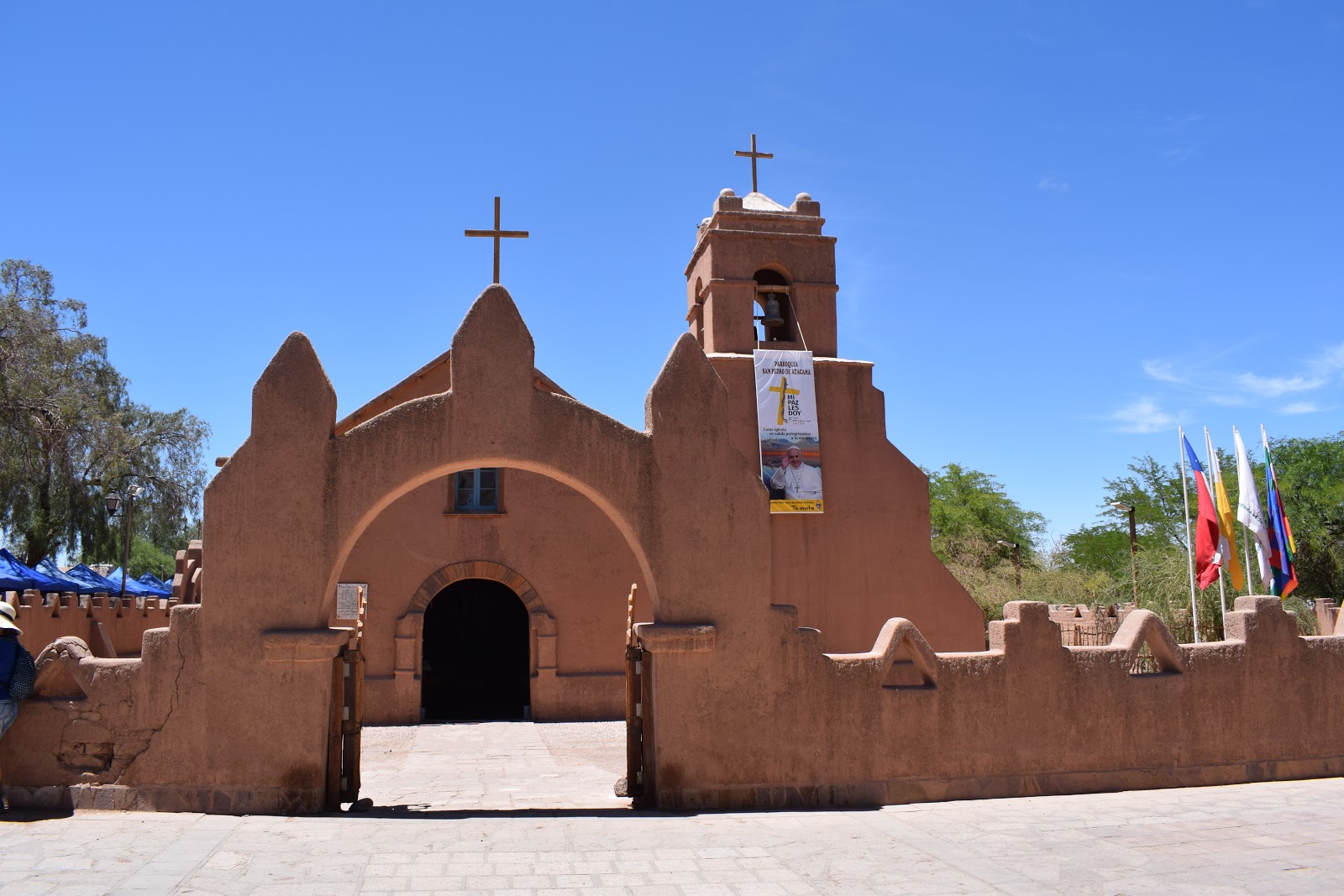 Aproveitei para visitar a Igreja de San Pedro de Atacama, que fica na praça de San Pedro. Foi construída em 1745. Sofreu com terremoto e passou por restauração recentemente. Anteriormente era pintada de branco, mas atualmente tem a cor ocre.