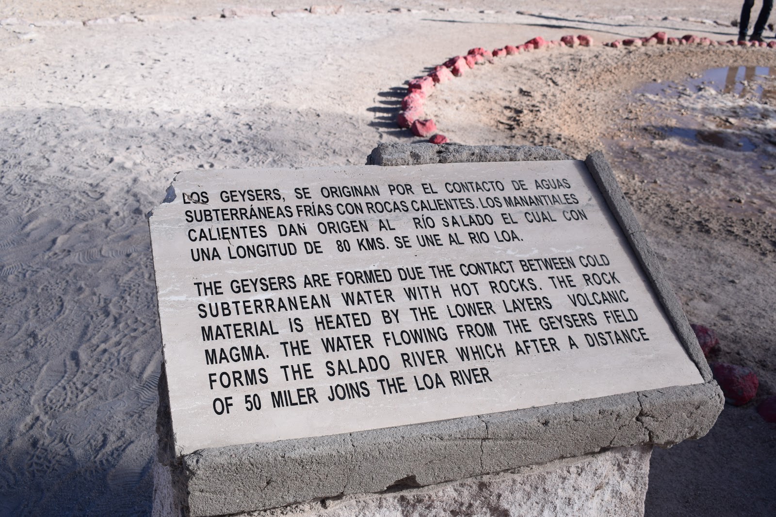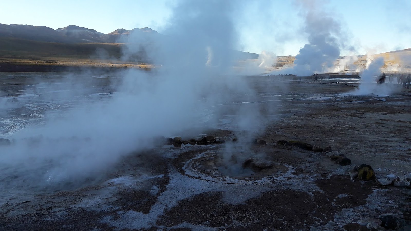 Ainda na madruga, os gêiseres apresentam uma quantidade grande de vapor d´água saindo de crateras, tendo seu ápice por volta das 7h. As temperaturas chegam a 85 graus, emergindo numa altura de até 8 metros. Pedem para não ultrapassar as demarcações, pois já houve acidente fatal com turista que não respeitou os limites.