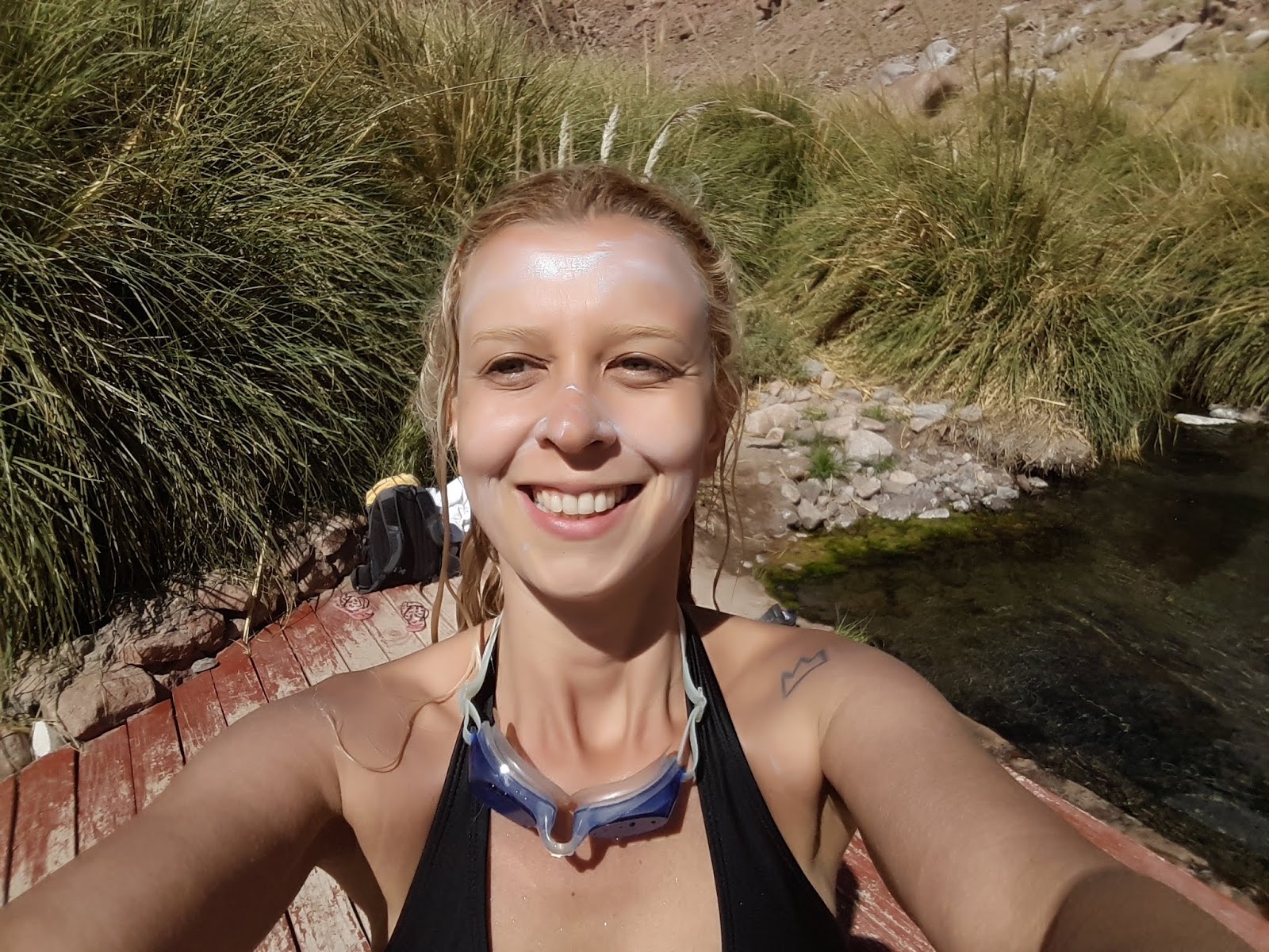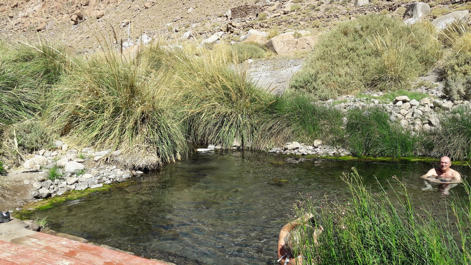 Optei pelo passeio vespertino, logo, segui até a agência para esperar a van que levaria o grupo até o ponto turístico (buscam no hotel apenas na saída pela manhã), que fica localizado a 30 km de San Pedro do Atacama. Suas águas nascem das Cordilheiras do Andes – conseguem a temperatura quente em razão da proximidade com materiais vulcânicos. Essas águas fluem na superfície do Rio Puritama, originando 8 piscinas naturais rodeadas por vegetação nativa.