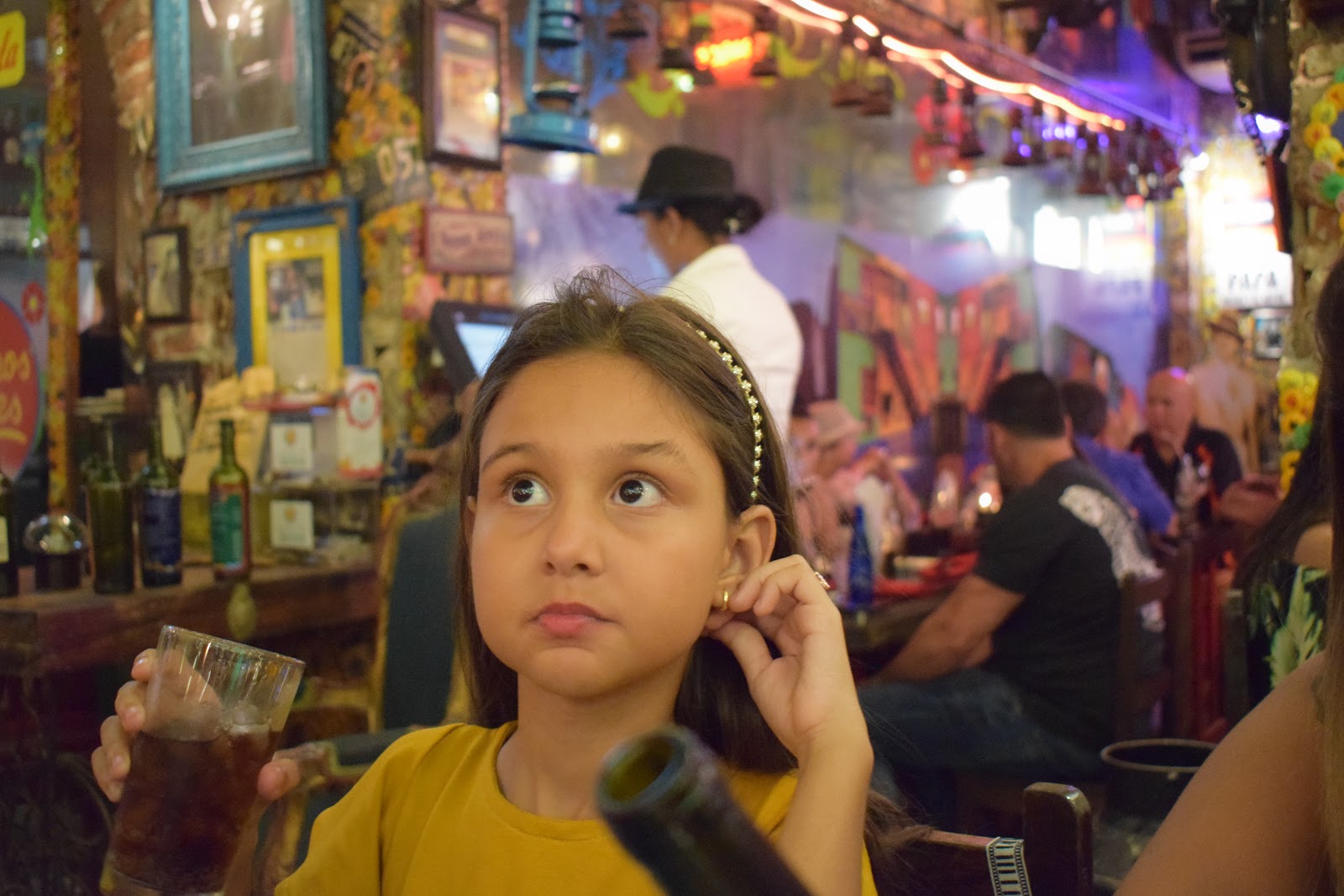 Posteriormente fomos comer ceviche no restaurante “Cebiches e seviches“. Não sei se não é hábito levar crianças nos restaurantes, mas pediram para ficarmos com Giovana no interior. O ambiente era bem escuro, mas não tinha música naquela hora.