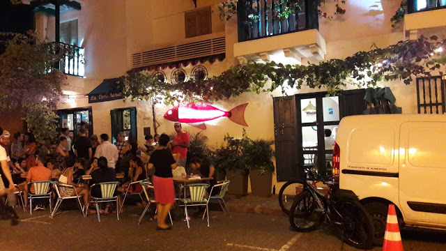 Antes de escurecer, fomos até o Café del Mar, que é um restaurante localizado na fortificação, com vista para o mar. Fica cheio de pessoas todos os dias para assistir o pôr do sol.