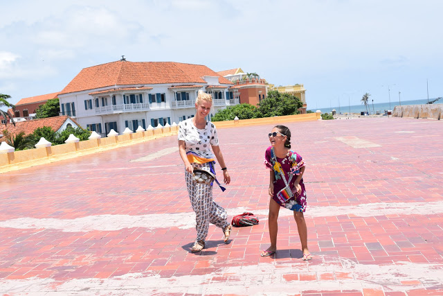 Minha irmã comprou uma fruta com uma “palenquera” (o “palenque” é uma língua crioula falada na Colômbia), e ela posou conosco para as fotos. Ficam por toda a cidade vendendo frutas e se tornaram símbolo da cidade.