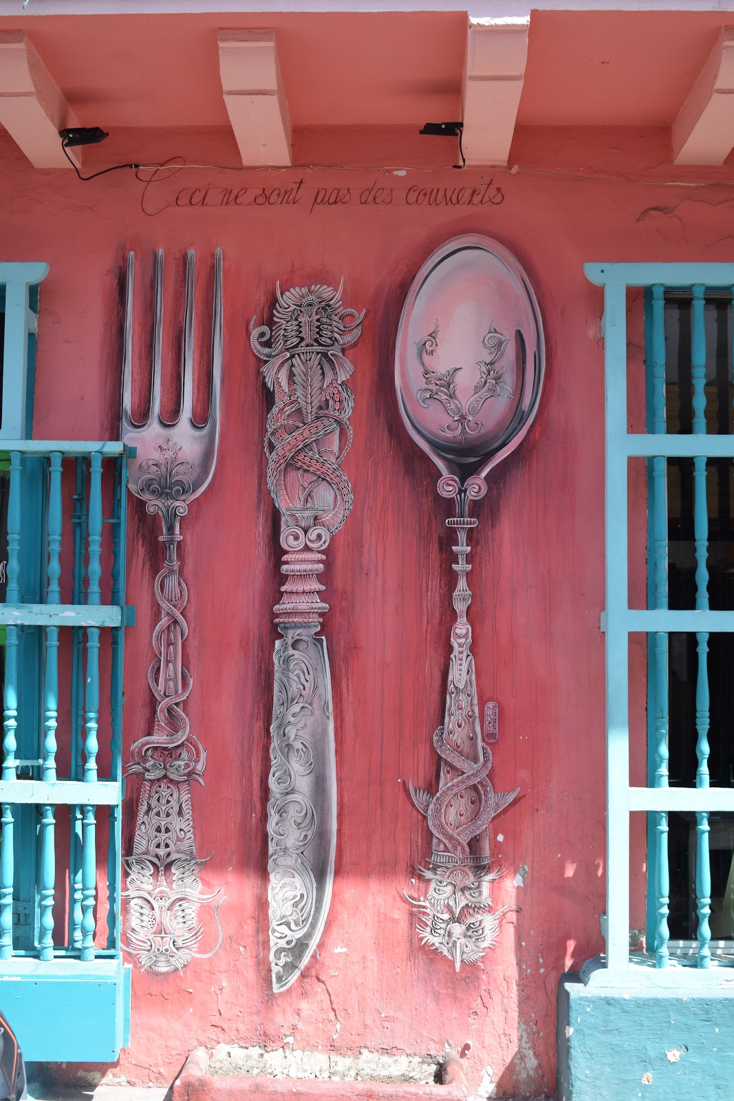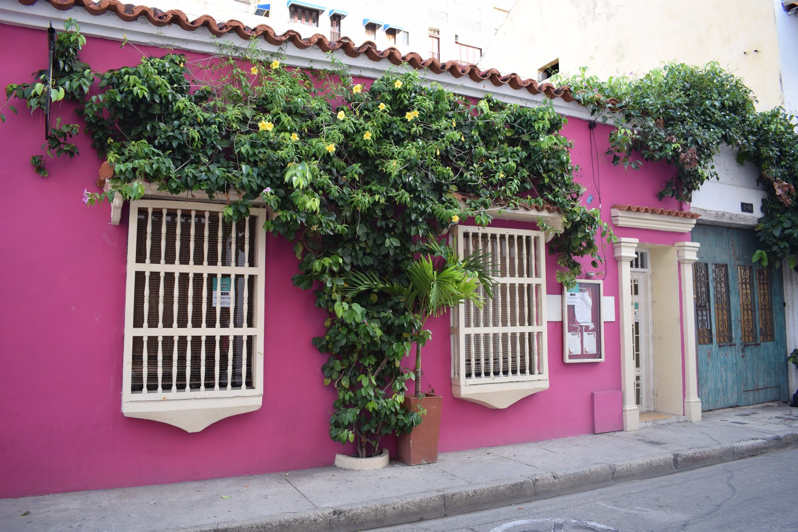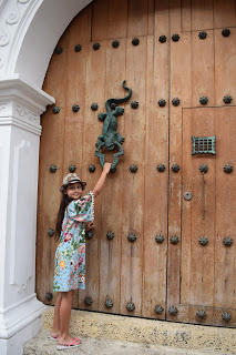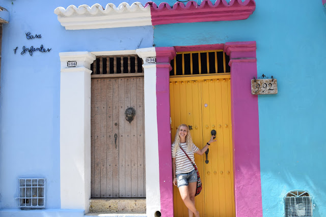 O destaque da cidade é, com certeza, suas cores. As casas coloniais são coloridas, com portas incríveis e flores. Eu e Giovana tiramos centenas de fotos em cada parede que encontramos. Depois seguimos para almoçar num restaurante bem barato: Totopo. Comemos peixe, arroz e banana, que custou 15.000 COP. Veio acompanhado de uma sopa aguada. Tomamos limonada. Tem a refeição com o melhor relação custo-benefício, mas é bem simples.