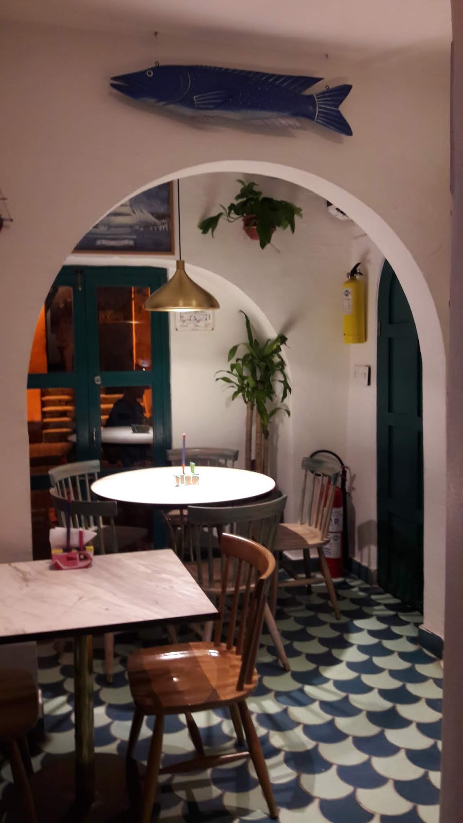 Ao retornarmos, por óbvio, minha irmã já estava ansiosa para jantar. Dessa vez fomos ao restaurante “La cevicheria“, no entanto, tinha uma fila de horas. Enquanto aguardava, tive que ir ao hotel, em razão de um “chamado na natureza”. Entramos já quase no limite do horário do serviço da cozinha. Corremos para pedir uma “paella”. A decoração é toda relacionada com o mar, inclusive o banheiro.