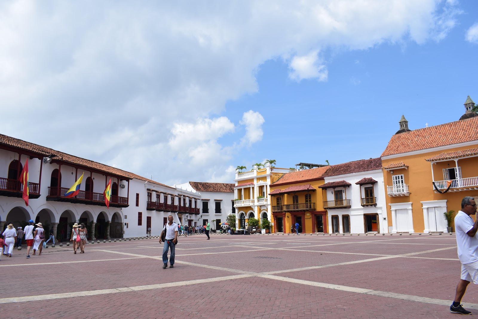 Tinha um sol para cada pessoa, mas turistar era preciso. Seguimos para “Plaza de la Aduana“, que tem esse nome porque ali funcionava a “Real Aduana”, que era um dos principais órgãos de controle sobre importações e exportações que faziam em Cartagena, ou seja, verificavam tudo que chegava no porto. Foi uma zona que se estabeleceu um intercâmbio entre vendedores e compradores e onde se realizava o comércio de escravos.
