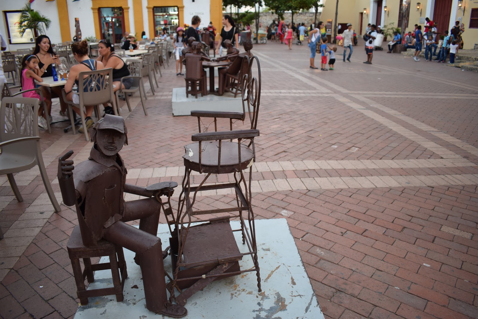 Seguimos o fluxo, pois a partir daquela rua havia bastante movimento, até que chegamos na “Plaza de la Trinidad“, que tem importância histórica, pois nela se formou um grupo de artesãos negros e mulatos que lutaram pela independência de Cartagena.