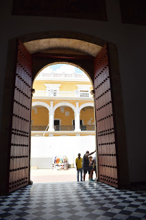 Paramos diante do Claustro Santo Toribio, que foi construído no século XVII, sendo um edifício com pátio central e jardim. Foi usado pela igreja católica, mas, no início do século, a Arquidiocese colocou a serviço da comunidade.