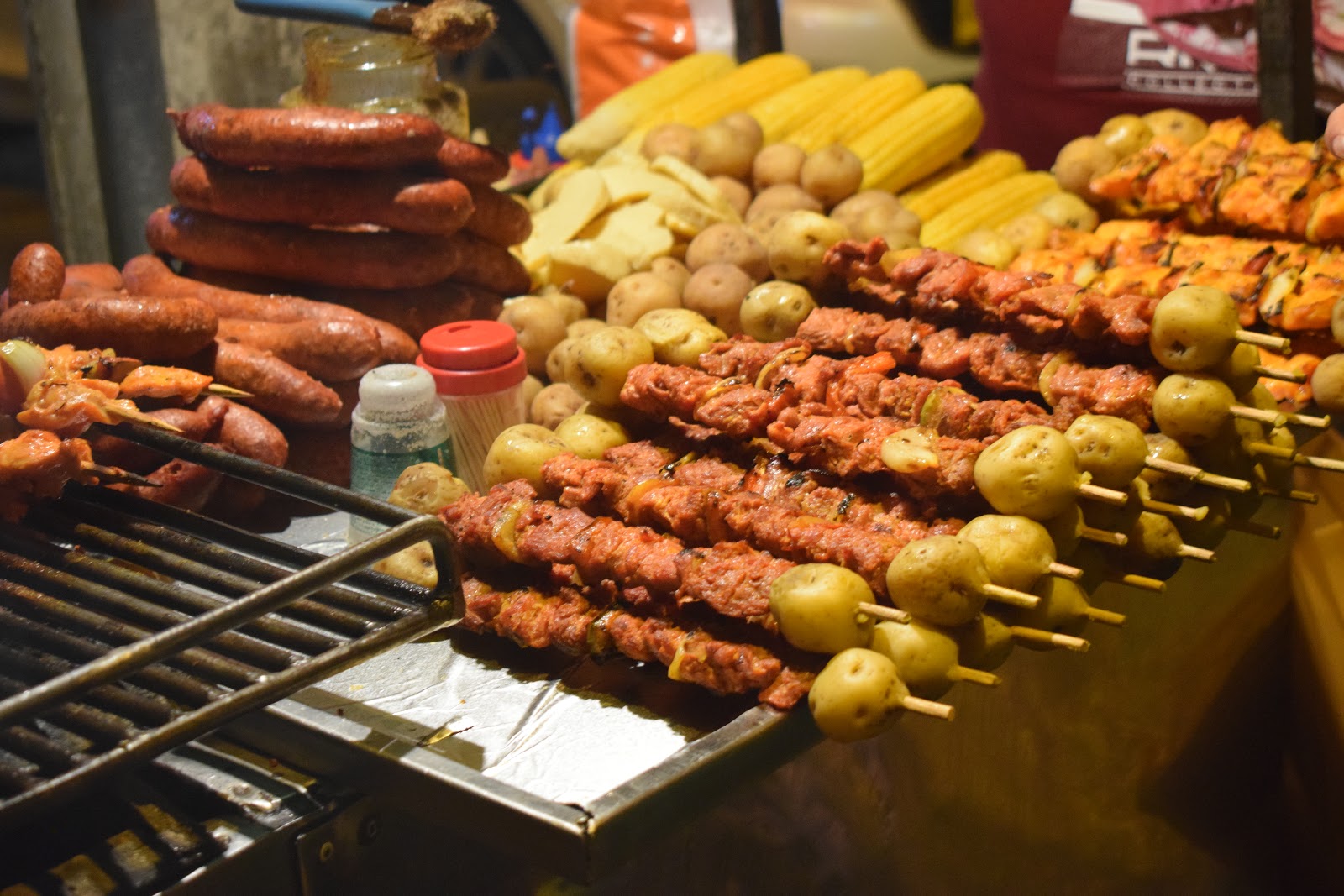 A praça tem uma igreja onde as pessoas locais estavam sentadas, pois era fim de semana. Encontramos muitos restaurantes bonitos, barraquinhas de comida de rua. Sentimos que pela primeira vez tínhamos saído da “bolha” da cidade amuralhada, pois ali encontramos moradores se divertindo. Minha irmã, sempre com fome, comprou um churrasquinho.