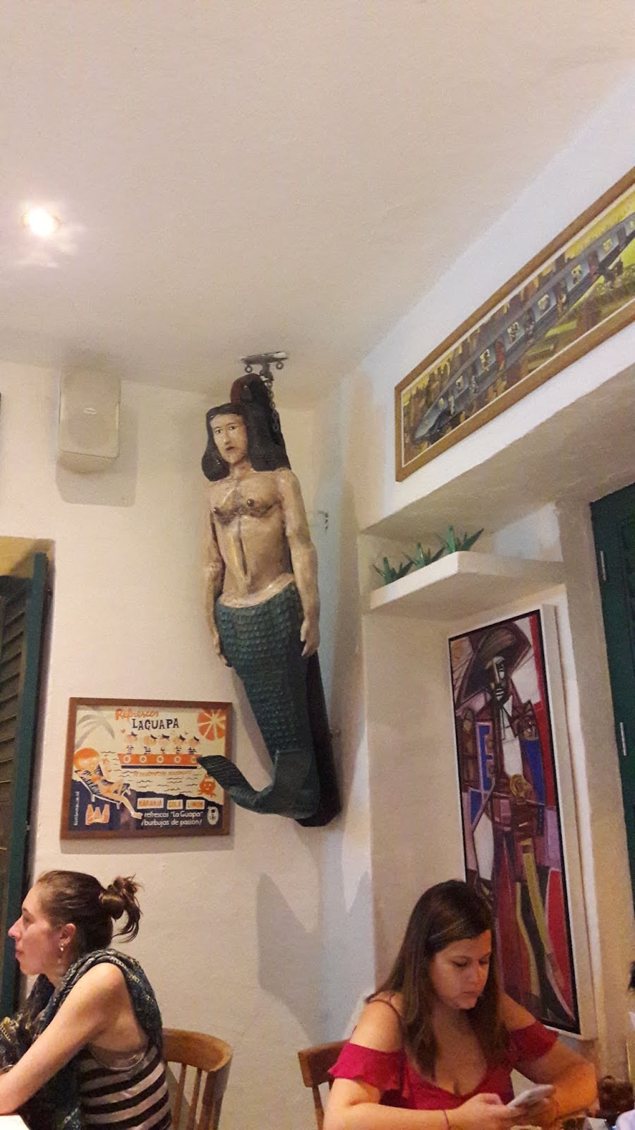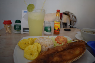 Fomos almoçar no famoso restaurante “La mulata“, que tinha fila de espera. Meu prato estava maravilhoso: arroz de coco, camarão, abacate, patacones e aipim. Para beber uma deliciosa limonada de coco.