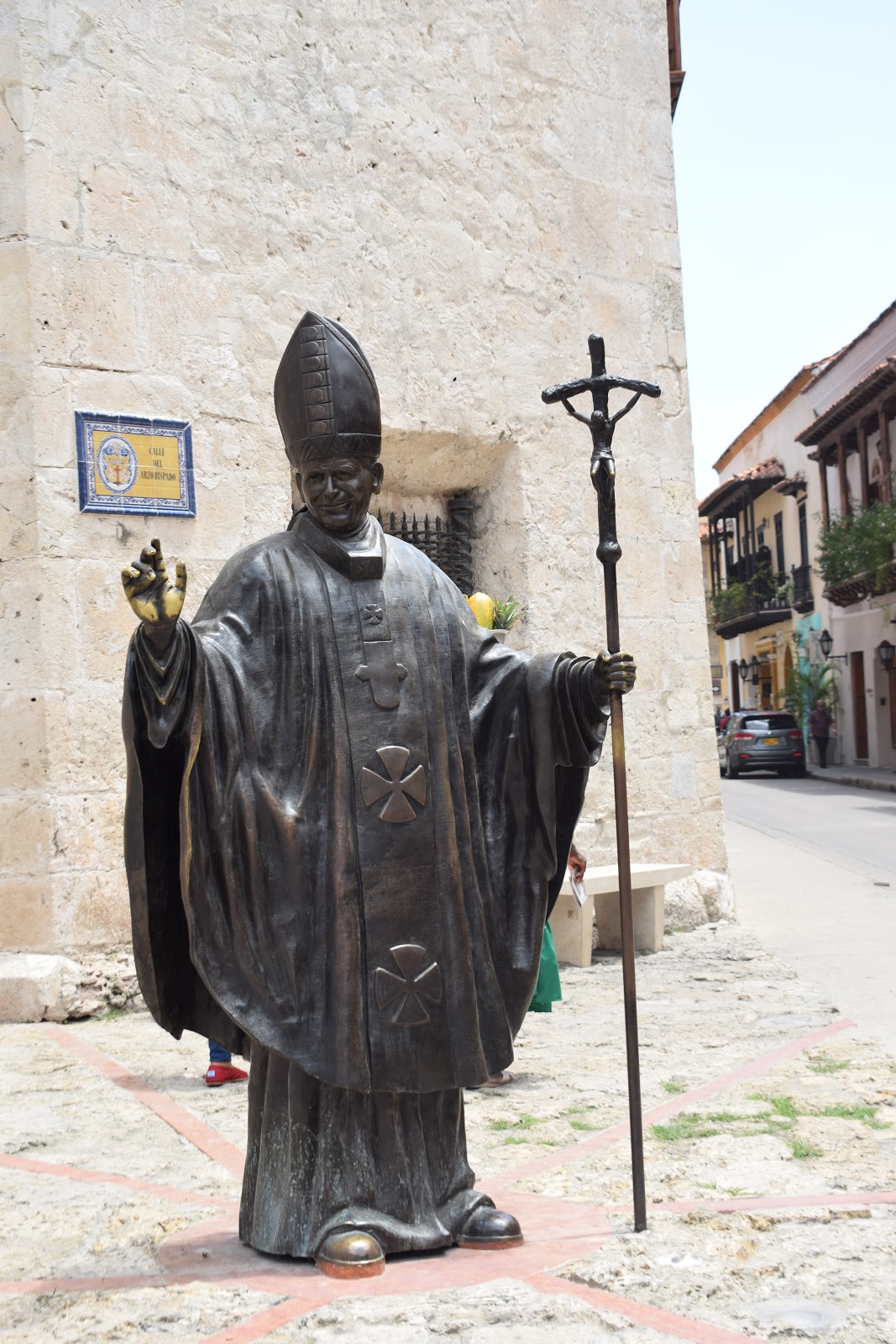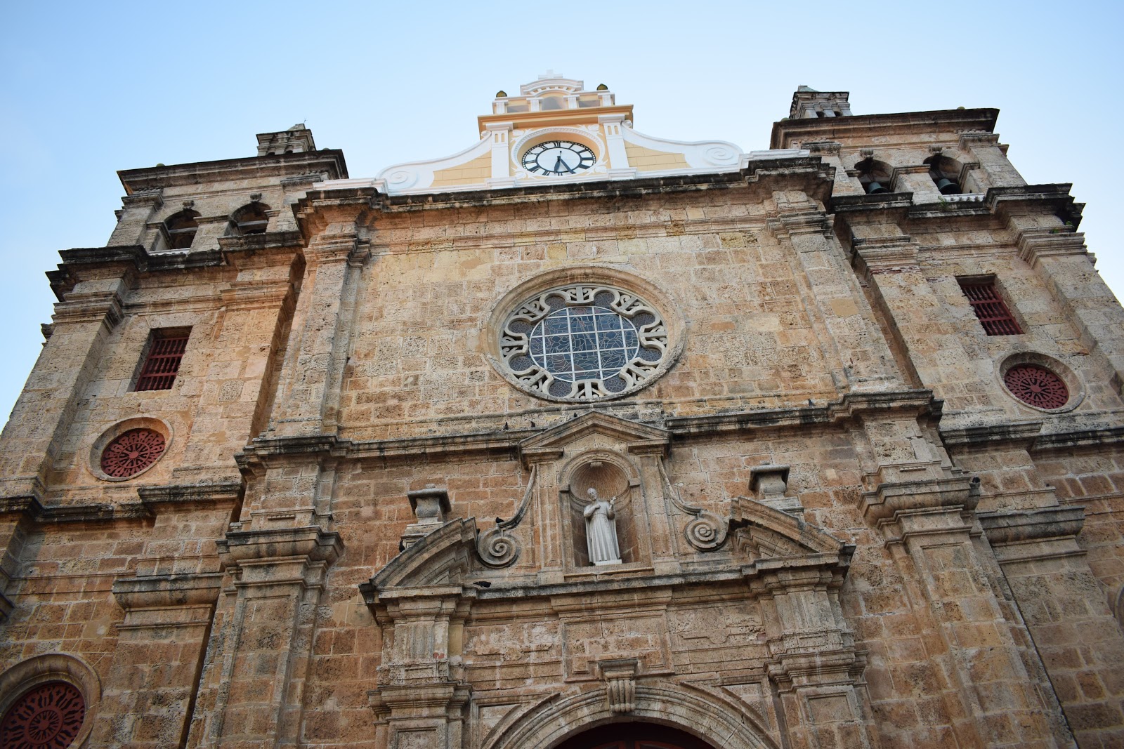 Caminhamos até a Catedral San Pedro Claver, que é uma igreja católica em homenagem a São Pedro Claver. A cúpula amarela e branca pode ser vista de diversos pontos da cidade.