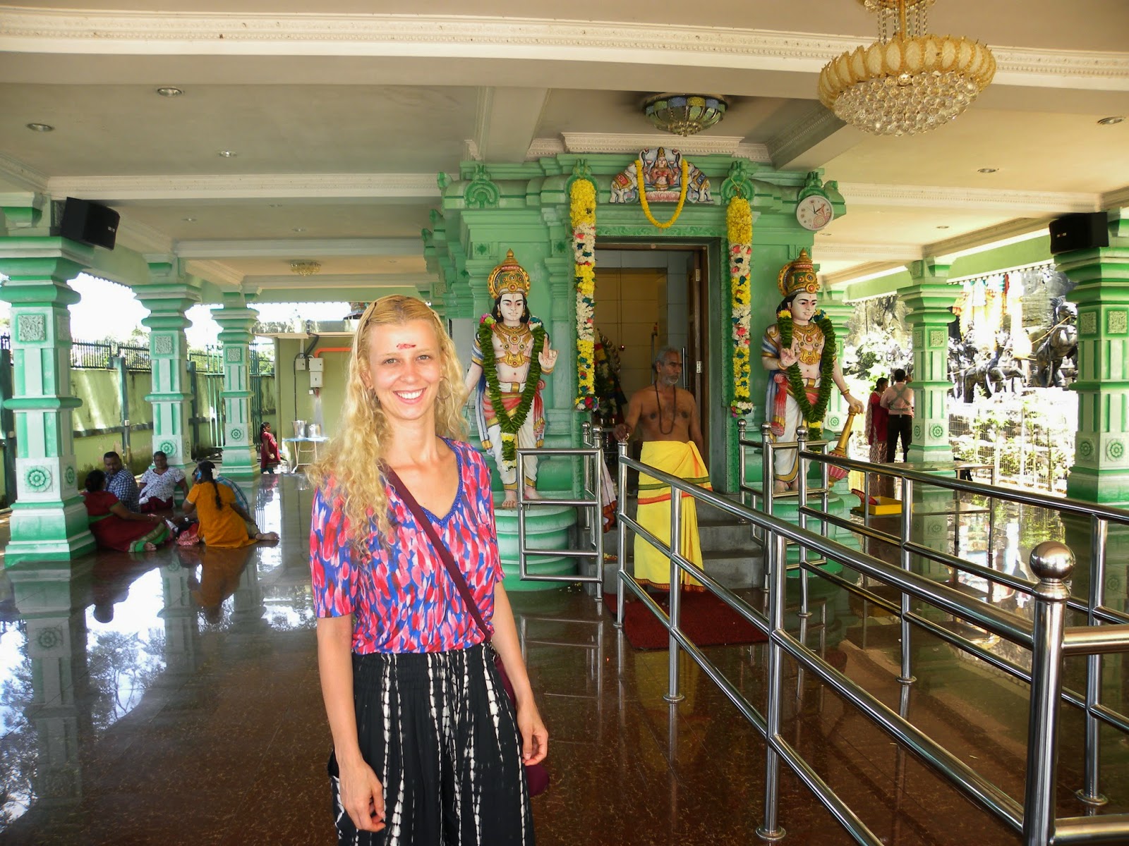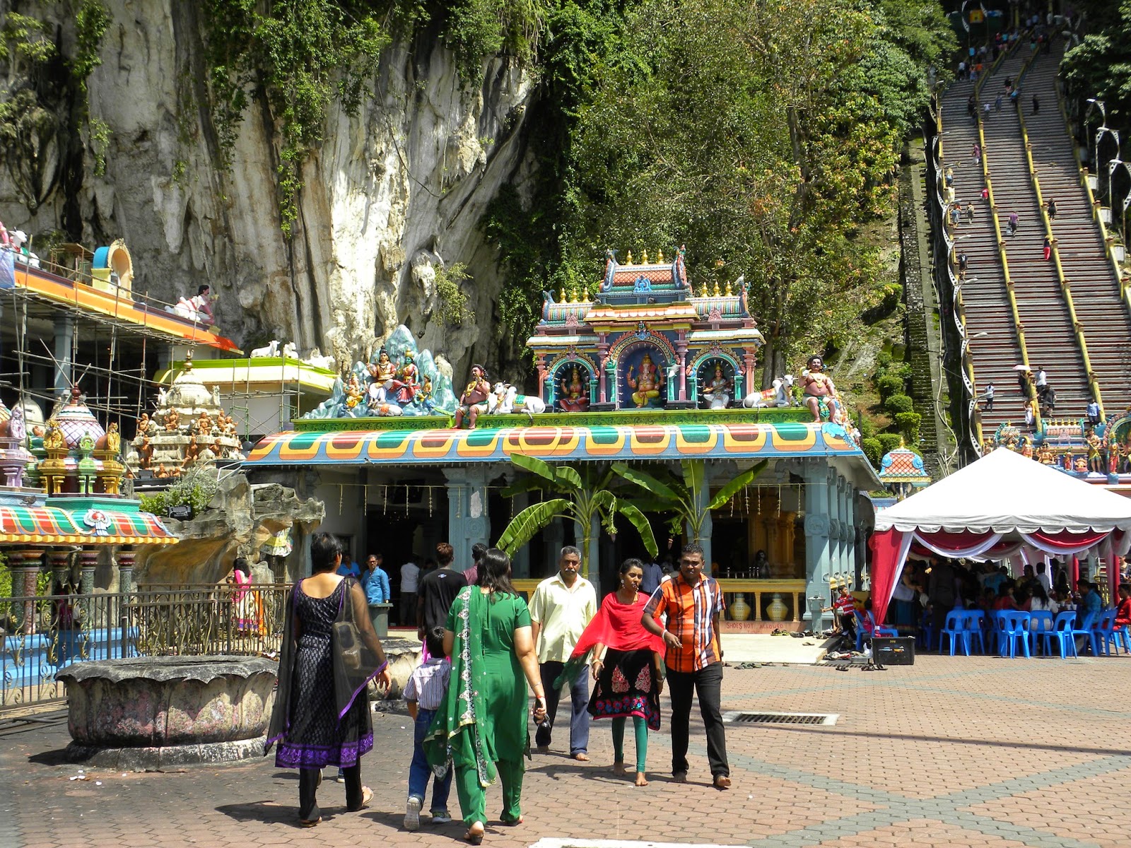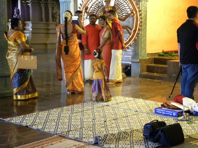 A visita por si só já valeria, no entanto, tivemos a sorte de chegarmos em um dos dias mais importantes para o hinduísmo e a praia em torno do templo estava repleta de pessoas locais lendo o livro sagrado, Bhagavad Gita – a maioria era bem jovem. Um som ecoava por todo o ambiente. Quando a maré está alta é impossível atravessar o terreno rochoso até o templo e, os sites mencionavam que é bom chegar no local antes de 11 da manhã, para conseguir ficar próximo ao templo, mas, novamente, tivemos sorte, pois já passava das 17 horas e o templo estava completamente acessível.