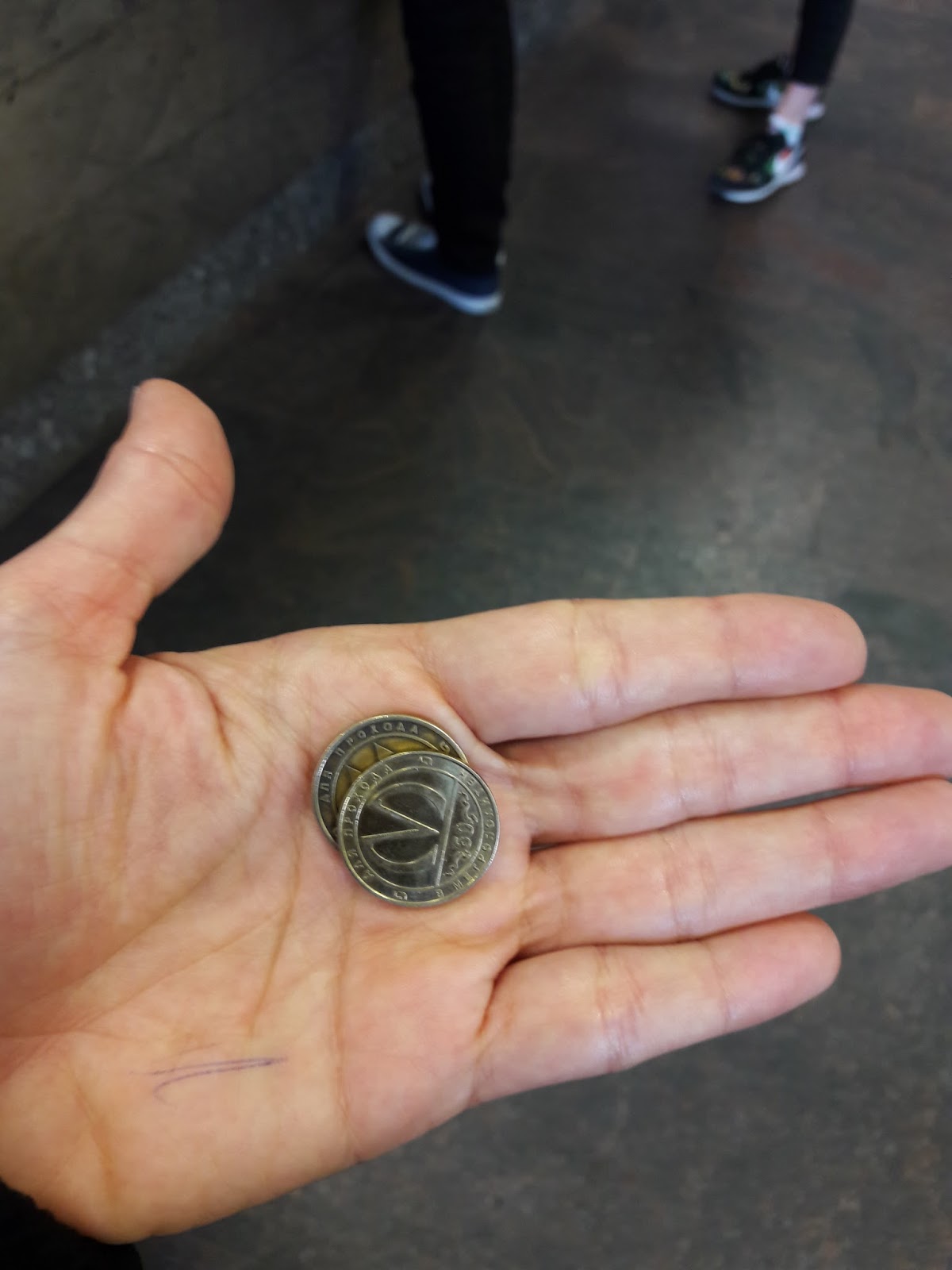 Segui para a bilheteria, já tinha deixado o mapa aberto no celular para mostrar para a atendente em qual estação desceria, pois não sabia se tinha preço diferenciado. Disse que custava 40 rublos (R$2,00) e que não tinha diferença na tarifa se fosse para outra linha/estação (foi a primeira pessoa que sorriu pra mim na Rússia! rs). O bilhete é uma moedinha, que é inserida na catraca. Devo ter ficado uns 5 minutos descendo na escada rolante, pois é muito profundo. Tinha segurança ostensiva no local, pois um mês antes teve um grande atentado terrorista no metrô.