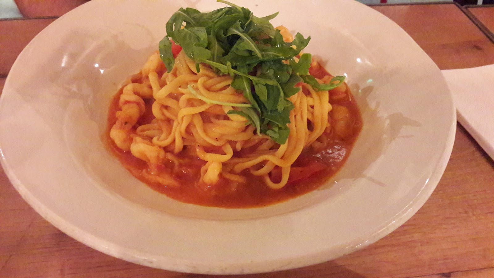 Constava no roteiro uma visita ao restaurante do Jamie Oliver (Jamie´s Italian) e não ficava tão longe, logo, seria possível ir caminhando. Li que está sempre cheio e precisa reservar, mas o relógio já marcava 23 horas e fechava meia-noite. Caminhamos apressados, como era sexta-feira, as ruas estavam cheias. Chegando lá a hostess perguntou sobre a reserva, disse que não tinha e nos levou até uma mesa. Em seguida, o garçom se apresentou e entregou o cardápio. Observei que a maioria das pessoas só pediam uma salada e água, inclusive as turistas chinesas da mesa ao lado. Tendo em vista que o estabelecimento pertence a um inglês, todos falam o idioma.