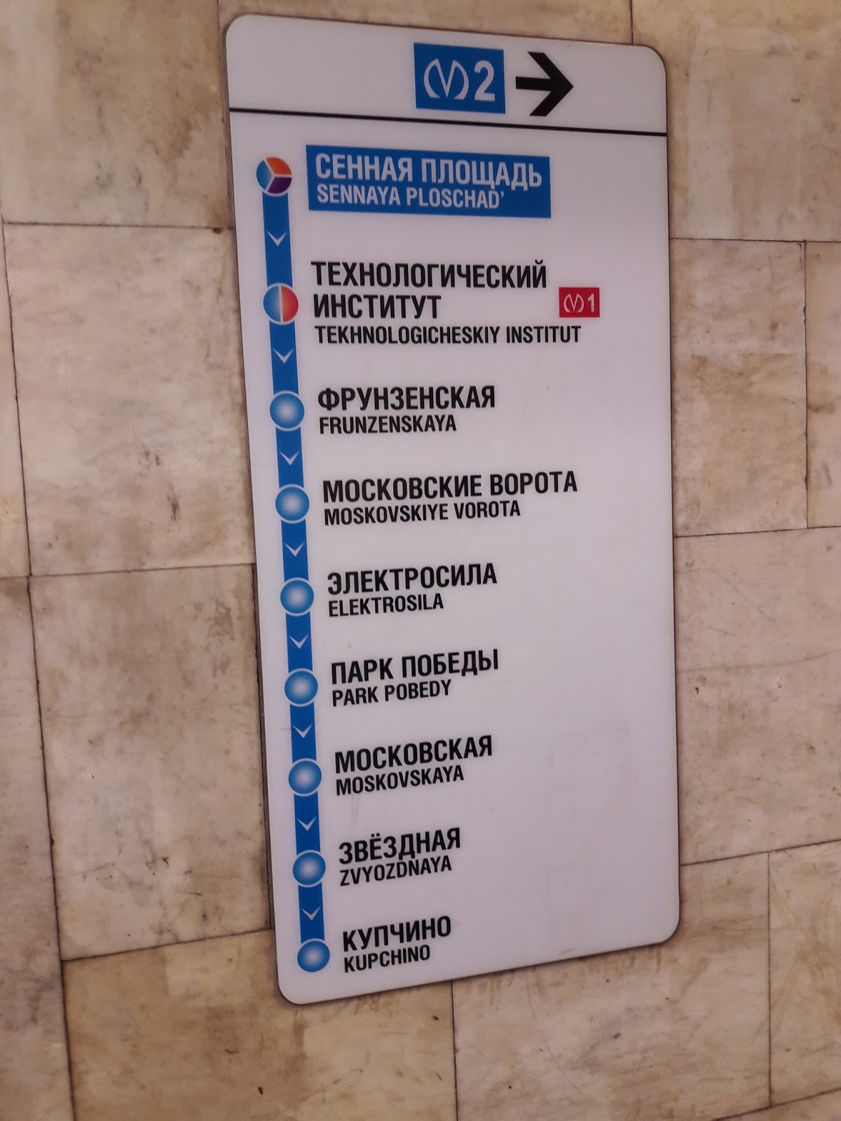 Voltamos para deixar as compras no apartamento e seguir em direção ao Palácio da Catarina, que fica em Tsarkoye Selo, a 25 km de São Petersburgo. Preferimos pegar o metrô na estação Sennaya Ploschad, pois está localizada na linha azul e desceríamos na estação Moskovskaya (Московская), também na linha azul.